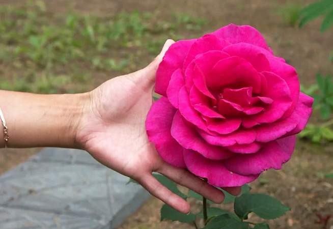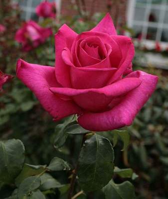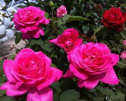 Роза чайно-гибридная Parole (Пароле). Цветки густомахровые, классической формы, ярко-розовые с пурпурным оттенком, устойчивы к дождю. Насыщенный аромат. Эффектный сорт чайно-гибридной розы с огромными бокаловидными цветками богатого оттенка! Листва крупная, блестящая. Куст прямостоячий, сильнорослый.