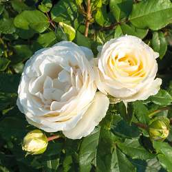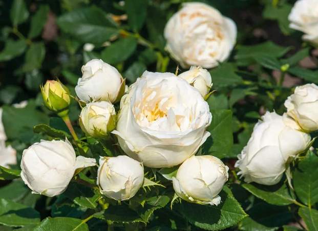 Роза Pearl Vaza (Перл Ваза). Сорт из серии "Art Vase" от Pheno Geno. Роза кремово-белая, цветки розеточного типа собраны в соцветия, сладко-ароматные. Бутоны круглые. Листья темно-зеленые, служат красивым фоном белым цветам.