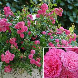 Цветки густомахровые, темно-розовые, устойчивы к дождю и солнцу. Сорт малого ухода, прекрасно зимует, отлично нарастает, цветёт на протяжении всего сезона! Куст компактный, хорошо облиственный. Высокая устойчивость к болезням.