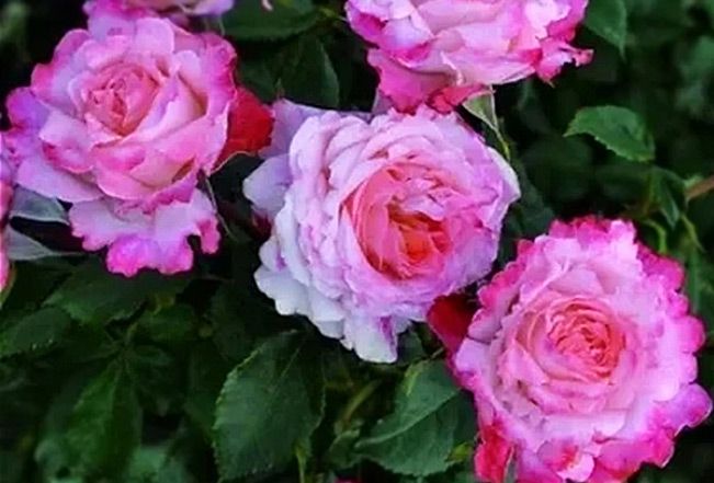 Роза Picotee Vaza (Пикоти Ваза). Сорт из серии "Art Vase" от Pheno Geno. Цветки диаметром 7-8 см, необычные и яркие, двухцветные, в центе оранжевые, а по краям светло- и тёмно-розовые. Аромат сильный, фруктовый. Цветение почти непрерывное в течение сезона. Листва устойчивая к заболеваниям. Куст компактный, высотой 40-50 см. Подходит для выращивания в горшках.