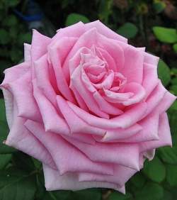 Роза Pink Aqua (Пинк Аква). Цветок крупный, розовато-сиреневого цвета, лепестки окрашены так, что край немного темнее основания. Окраска меняется от одной стадии цветения к другой и, выгорая на солнце, в полном роспуске становится бледно-голубой.