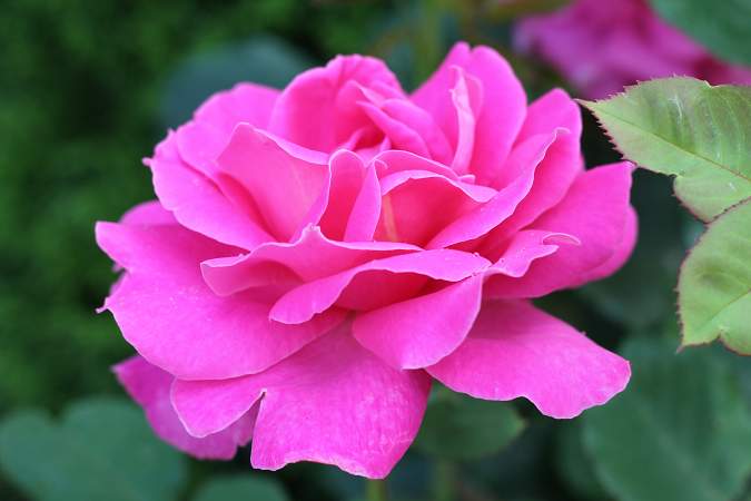 Роза чайно-гибридная Pink Peace (Пинк Пис). Это потомок знаменитой Peace, а не спорт. Цветки крупные, с множеством длинных лепестков, красиво закрученных по краям. Окраска темно-розовая или светло-малиновая.