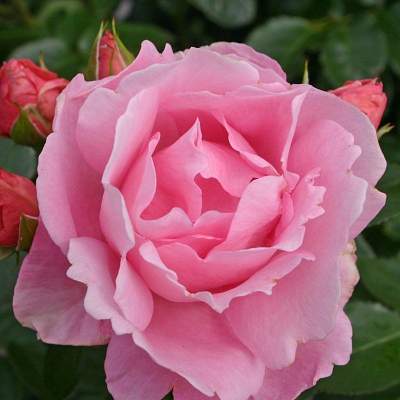Роза Poetry (Поэтри). Цветки очаровательные - розовые, полумахровые, с фестончатыми лепестками, 7 см в диаметре, собраны в соцветия. Аромат легкий.