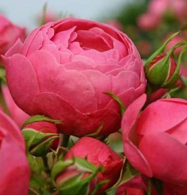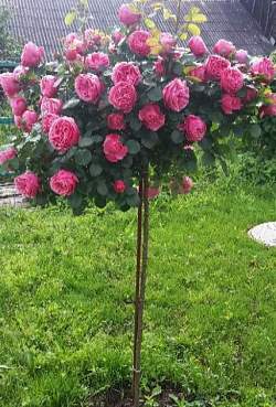 Роза Pomponella (Помпонелла) на штамбе 80 см. Цветки махровые шаровидные, напоминают помпоны. Тёмно-розовые, очень устойчивы к дождю. Обильное цветение. Высокая зимостойкость.