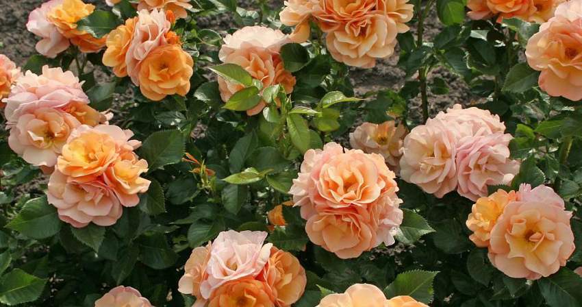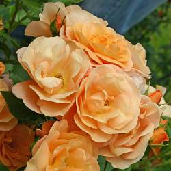 Роза Portoroz (Портороз). Энергично растущая флорибунда с очень здоровой листвой и привлекательной окраской. Цветки диаметром 7-8 см, полумахровые, абрикосовые. Аромат слабый. Цветение повторное.