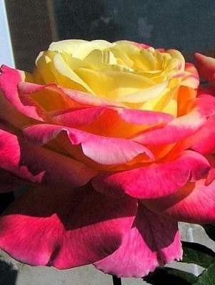 Роза Pullman Orient Express (Пульман Ориент Экспресс). Если вам нужно доказательство важности сорта Mme A. Meilland (Peace), почти 60 лет спустя после ее выведения, нужно лишь посмотреть на сеянцы, которые до сих пор от нее получают. Сорт Pullman Orient Express (Love and Peace) получил награду Американского Розоводческого общества AARS в 2002 г, и он действительно выделяется среди других сортов.