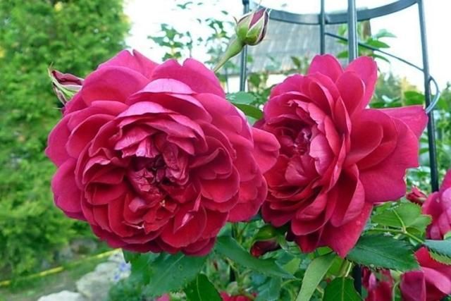 Роза плетистая Quadra (Квадра) — сорт необычайной красоты. Сотни ярко-красных лепестков уложены идеально симметрично, как у старинных галльских роз. Лепестки загибаются к центру, напоминают пионы. По мере распускания цветка лепестки начинают отгибаться вниз. Цветки достигают 8 см в диаметре, появляются в кистях по 1-4 шт. Легко размножается черенкованием. Сорт зимостоек без укрытия в 3 зоне, молодые побеги могут подмерзать.