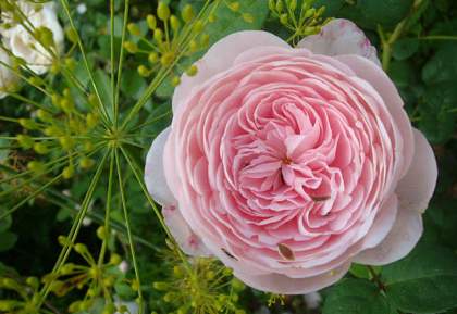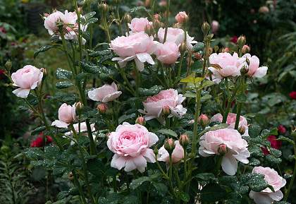 Роза Queen of Sweden (Квин оф Свиден). Роза необычайной свежести и очарования. Цветки хороши на всех стадиях роспуска. Небольшие округлые бутоны распускаются в глубоко чашевидные цветки, и постепенно раскрываются до слегка чашевидных розеток. Цвет нежно-розовый, иногда с абрикосовым оттенком.