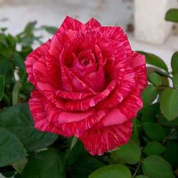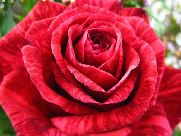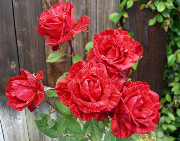 Роза Red Intuition (Рэд Интуишн). Цвет красный с тёмно-красными полосами и пятнами. От 31 до 39 лепестков. Цветки от среднего до крупного размера, махровые. Побеги несут главным образом одиночные цветки, бокаловидные, высокие в центре.