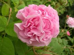 Роза Reine des Centfeuilles. Цветки крупные, махровые (17-25 лепестков), ароматные. Кусты выносливые, могут расти в полутени. Цветение однократное, но обильное и продолжительное, в конце весны — начале лета. Очень выносливая и зимостойкая.