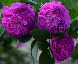 Роза Reine des Violettes (Рэйн дэ Виолетт). Цветки густомахровые, старинной формы, насыщенно-красно-фиолетового цвета с тонами пурпурного, лавандового и фиолетового с серыми оттенками, душистые, с приятным сладким ароматом.