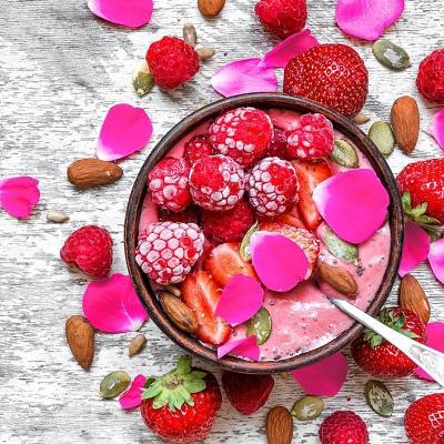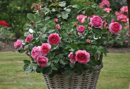 Роза флорибунда Renee van Wegberg (Рене ван Вегберг). Эта роза не только восхитительно и сильно пахнет малиной, но также обладает приятным вкусом. Оригинатор пишет о ней как о розе, лепестки которой имеют сладкий малиновый вкус. Роза входит в коллекцию "Съедобные розы".
