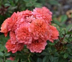 Роза Ricky (Рики). Очень привлекательная миниатюрная роза. Цвет чудесный, теплый розовато-оранжевый, цветки не мелкие, густо-махровые, из 30 лепестков. Форма цветка прелестная, похожа на хризантему, аккуратная. Цветки держатся на кусте неделями, поэтому роза всегда усыпана цветками. Отличный вариант для посадки в розарии на переднем плане. Украшение клумб, патио, террас, так как отлично растет в вазонах.