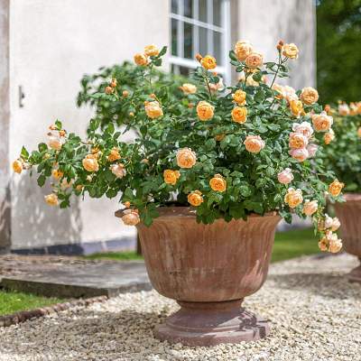 Роза шраб Roald Dahl (Роальд Даль). Эта роза с непрерывным и обильным цветением станет ценным дополнением в любом саду. Красивые красно-оранжевые бутоны раскрываются в чашевидные среднего размера цветы персикового цвета. Несмотря на свой деликатный вид, цветы достаточно прочны, чтобы выдерживать неблагоприятные условия.