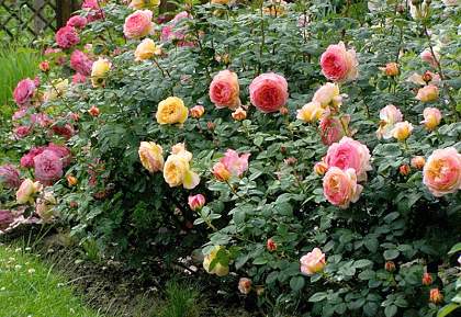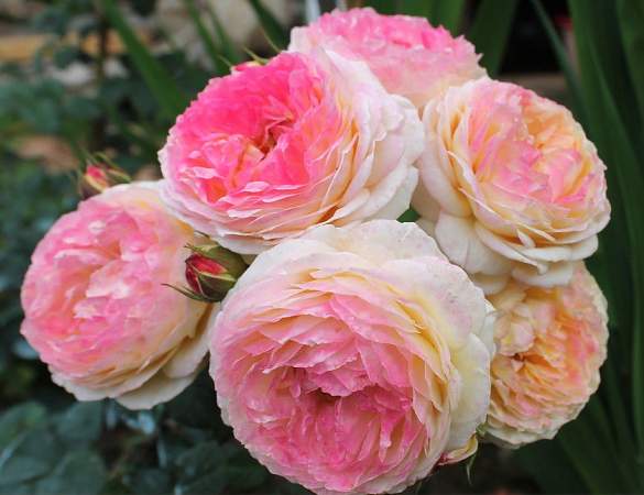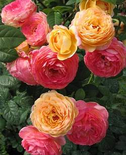 Роза Rosomane Janon (Розаман Жанон). Высота куста около 100 см, листья матовые, очень устойчивые к болезням. Цветки ароматные чашевидные, напоминающие бурбонские розы. Окраска желтая с розовыми мазками, которые становятся темнее по мере распускания цветка.