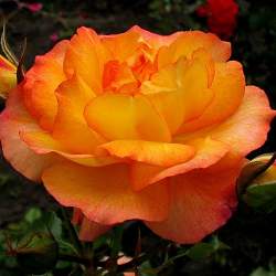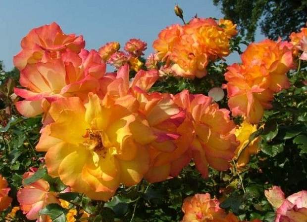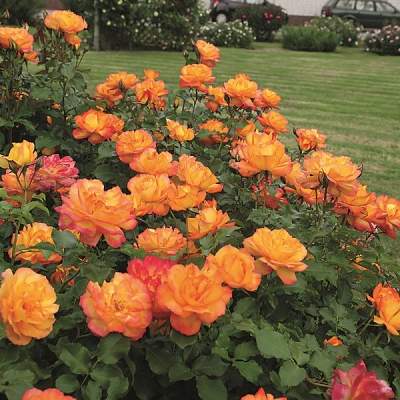 Цветки появляются в крупных кистях для такой крупноцветковой розы, иногда до 15 шт. в кисти, но обычно 5-10. У Sahara устойчивая к болезням ярко-зеленая блестящая листва, и сильный ветвистый куст.