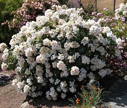 Роза Sally Holmes (Салли Холмс). Sally Holmes, названная в честь жены селекционера — результат скрещивания любителем таких сортов, которые профессионалы и не подумали бы использовать. Цветки появляются в огромных кистях, как у одного из его родителей Ballerina, но размер и диаметр цветков близок к цветкам другого родителя, флорибунды Ivory Fashion.