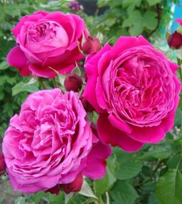 Роза Salma Es-Said (Сальма Эс-Саид). Цветки большие, махровые, старинной формы, розово-карминные, в соцветиях. Аромат дамасской розы и цитрусовых, сильный. Цветение обильное, повторное. Листва глянцевая, тёмно-зелёная, здоровая, подчёркивает красоту и обилие цветков. Кусты высотой 250-300 см. Рекомендуется для решёток, беседок.