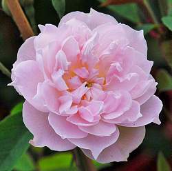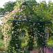 Роза Scarman's Himalayan Musk (Скарманс Хималайан Маск). Этот мощный рамблер цветет обильно и продолжительно в течение двух месяцев. Крупные, кремово-розовые цветы распускаются в больших соцветиях. Цветки не меньше 8 см, перламутрово-розовые, с красиво уложенными заостренными лепестками. С возрастом цветки бледнеют и приобретают теплый тон. После цветения образуются декоративные съедобные плоды.