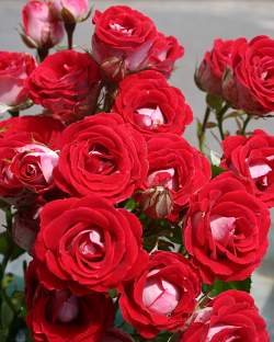 Цветки махровые (17-25 лепестков), красные с кремово-белым реверсом. Аромат лёгкий. Компактный куст, быстрый рост, обильное цветение весь сезон, листва темно-зелёная глянцевая, прекрасная устойчивость к болезням. Зимостойкость: пятая зона.