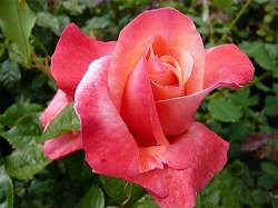 Роза Silver Jubilee (Силвер Джубили). Цветки красивого абрикосово-розового тона. Внешние лепестки нежно-розовые, внутренние темно-розовые, а лепестки между ними абрикосовые. Изнанка лепестков темнее, что создает красивую игру теней. Цветки идеальной формы, медленно распускаются. Появляются по одному или в кистях до пяти шт., и великолепны в срезке. Куст компактный и колючий с мелкой густой бронзовой листвой, устойчивой к болезням. Цветки не боятся дождя.