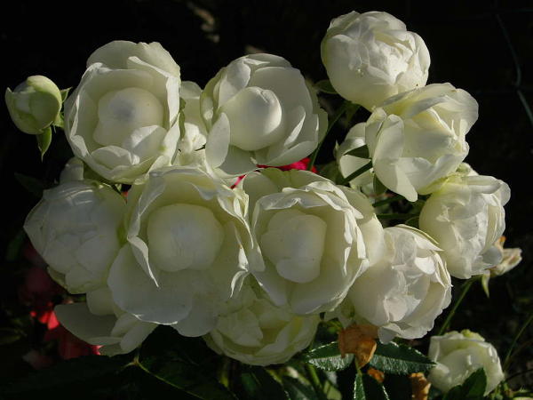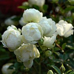 Роза Snow White, Sneprinsesse (Сноу Вайт, Шнеепринцессе). Превосходная роза для посадки вдоль дорожек. Невысокая, но с красивым кустом (50 х 50 см). Цветки некрупные (4 см), но появляются в больших соцветиях, до 10 шт. в каждом. Цветение очень обильное, непрерывное, до поздней осени.
