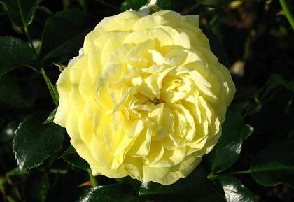 Непревзойденная комбинация темной глянцевой листвы и лимонно-желтых цветов делают эту флорибунду настоящим достижением в селекции роз.