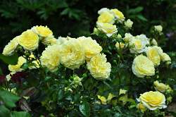 Роза флорибунда Solero (Солеро). Цветки густомахровые, эффектного лимонного оттенка, устойчивы к дождю, обладают легким ароматом. Цветение обильное, причем повторное также очень впечатляющее.