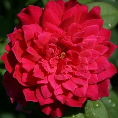 Роза Sophy's Rose (Софи Роуз). Лепестки мелкие в центре, к краям постепенно увеличиваются в размере, — и к краям они довольно крупные, малиново-пурпурные, с более светлой нижней стороной. Это особенно заметно в центре цветка, где лепестки загибаются, образуя пуговку. В результате получается необычный цветок, похожий на георгин.