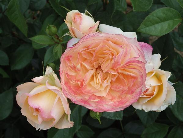 Роза Sourire du Havre (Сурир ду Авр). Цветки диаметром 9-12 см, махровые (более 41 лепестка), лососёво-оранжевые с розовыми оттенками. Аромат лёгкий. Цветение обильное, повторное. Листва блестящая, устойчивая к заболеваниям. Куст высотой 80-100 см. Рекомендуется для миксбордеров. Необычайно красивая роза, цветущая крупными кластерами.