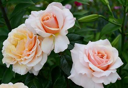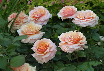Роза чайно-гибридная Sue Hipkin (Сью Хипкин). Густомахровые цветки в старинном стиле, часто квартированные. Янтарно-розовый цвет перекрывается нежно-розовым, у основания лепестков оттенок медовый. Куст высотой 100 см, шириной 65 см.