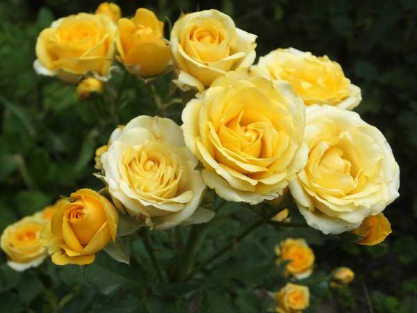 Роза Sun City (Сан Сити). Роза Sun City является одной из самых красивых и универсальных роз, ее можно выращивать в горшках и в открытом грунте и как флорибунду, и как полиантовую. Цветет практически непрерывно. Небольшие ярко-желтые цветки сменяю один другой в течении всего лета и осени. Максимально в высоту сорт достигает 60-80 см, но при более короткой обрезке куст станет более компактным и пушистым.