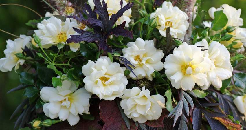 Листва мелкая, темно-зеленая, густая и блестящая. Куст сильно разрастается.