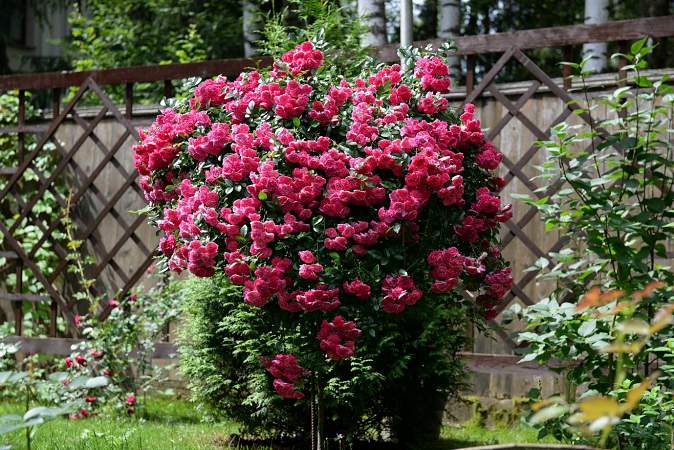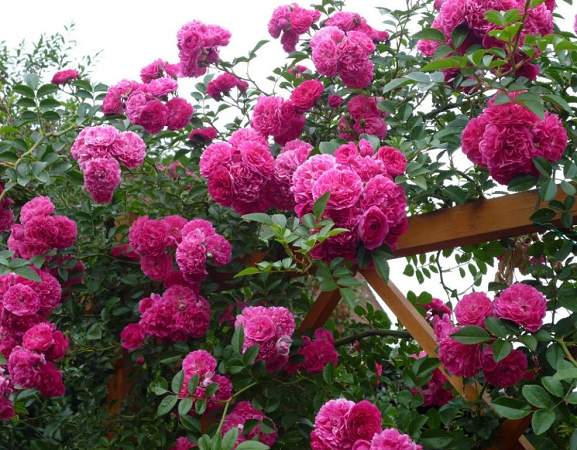 Роза клайминг Super Excelsa (Супер Эксцельза). Карл Хетцель вывел Super Excelsa как улучшенную версию популярного зимостойкого старого сорта Excelsa. Это был один из его первых гибридов, получивший престижный сертификат ADR — сорт цветет повторно и более устойчив к заболеваниям, чем Excelsa.