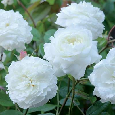 Селекция: David Austin 2010. Высота куста 100 см, ширина 100 см. Цветки чистого белого цвета. Устойчивость к заболеваниям высокая, очень раннее цветение. Аромат насыщенный, классический (розовое масло). Повторно-цветущая.