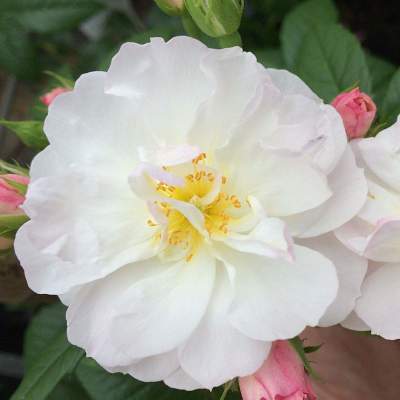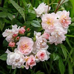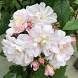 Роза Sweet Siluetta (Свит Силуэтта). Цветки маленькие, диаметром 3-4 см, полумахровые, белые с нежно-розовым оттенком, в больших зонтиковидных соцветиях. Аромат лёгкий. Цветение повторное.
