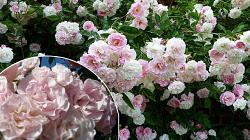 Роза Tausendschon, Beauty Thousand (Таузендшён). Сорт, цветущий необычайно обильно! Вначале цветки густо-розовые, затем выгорают до бледно-розовых, в то время как центральные лепестки кремовые. Цветки махровые, с волнистыми лепестками, появляются в крупных кистях на концах длинных побегов (20-40 шт), легко пахнут мускусом.