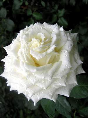 Роза чайно-гибридная Tineke (Тинеке). Цветки крупные, густомахровые, аккуратные округлые бутоны разворачиваются несколько дней. Цветки кремово-белые, с чисто-белыми внешними лепестками и лимонным оттенком в центре. Появляются по одному на очень длинных побегах (60-80 см), в воде стоят около недели. Роскошная срезка.
