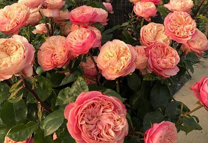 Роза Victorian Classic (Викториан Классик). Совсем маленький (40-60 см) шраб или патио-роза. При этом цветки очень крупные, до 10 см. Окраска восхитительная — переливчатая, от нежно-розового до ярко-кораллового. Цветки отлично переносят дождь. Что важно, они долго держатся на кусте, около месяца. Эта роза — прекрасный кандидат на украшение переднего плана цветника