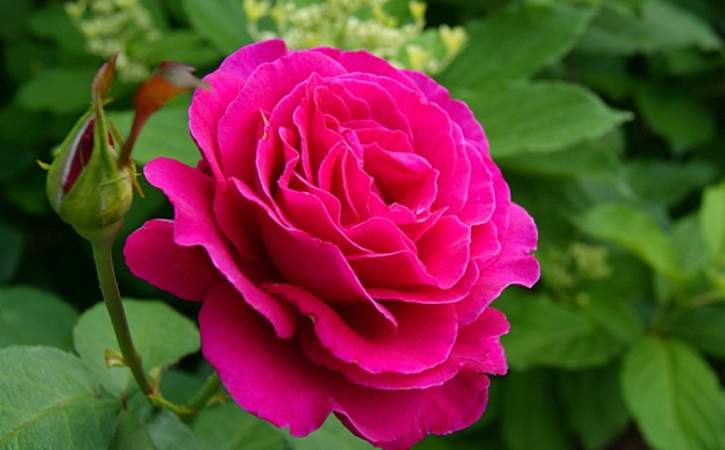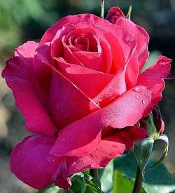 Роза Vien Rose (Вьен Роуз). Цветок очень крупный, до 12 см в диаметре, махровый (до 40 лепестков). Окраска розовато-малиновая. Цветок классической формы чайно-гибридной розы с высоким центром. Аромат насыщенный и приятный. Куст высокий, ровный, шиповатый. Листья глянцевые.