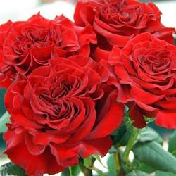 Роза Wanted (Вантед). Феерически красивые цветки. Элегантные, крупные, диаметром 11-12 см, махровые (40-45 лепестков), классической формы, темно-красные, бархатистые, одиночные. Лепестки очень плотные, волнистые. Цветение повторное в течение сезона. Листва устойчивая к болезням. Куст высотой 70-90 и шириной 60 см.