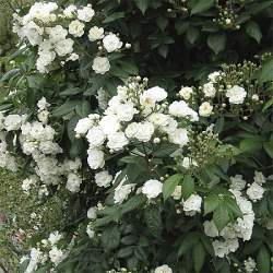 Цветки маленькие, махровые, чисто-белые, в шаровидных соцветиях, занимающих более трети побега. Соцветия пригодны для срезки. Аромат лёгкий. Цветение непрерывное, с июня до октября. Куст вертикальный, очень грациозный, достигает 125-150 см, может использоваться как плетистая роза-рамблер.
