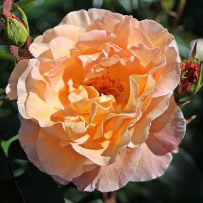 Роза шраб Whisky (Виски). Это одна из самых популярных роз. У Whisky очень красивые цветки 10-11 см в диаметре. Цветки абрикосово-розовые, с желтой оборотной стороной лепестков и красно-оранжевым оттенком при распускании. В жаркою погоду цвет бледнее, обычно нежно-желтый, а в прохладную очень яркий.