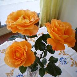 Из элегантных бутонов распускаются красивые чашевидные цветки с волнистыми лепестками. Цветы имеют нежный аромат. Цветы устойчивы к дождю и хорошо стоят в срезке. Куст высотой 70 см. Листва темно-зеленая, здоровая, куст раскидистый.