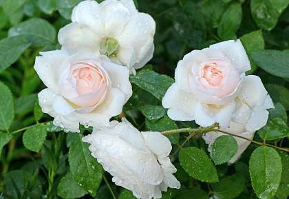 Роза шраб Winchester Cathedral (Винчестер Кэсидрал). Цветки иногда имеют легкий желтый оттенок в центре во второй половине лета, и эту розу превосходит только Glamis Castle, который, однако, гораздо ниже.