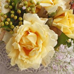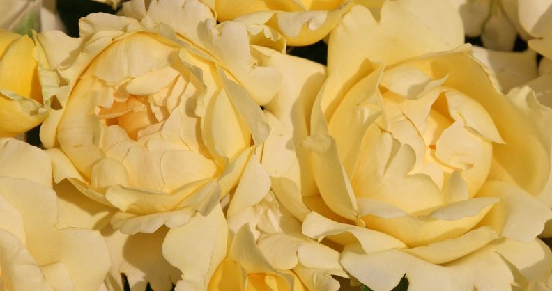Роза Winter Sun (Винтер Сан). Цветки нежно-жёлтые, среднего размера, диаметром 7-8 см, густомахровые, с лёгким ароматом.