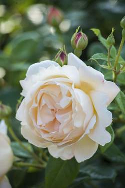 Роза Wollerton Old Hall (Воллертон Олд Холл). Селекция: David Austin, 2011. Новинка 2011 года. Сорт получил название в честь одного из красивейших частных садов Великобритании, который расположен по соседству с садом Остина. Округлый махровый цветок (26-40 лепестков) вначале имеет цвет сливочного масла и по мере роспуска постепенно светлеет, доходя до светло-кремового. Аромат насыщенный, с нотками мирта.