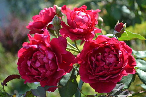 Цветки всегда ровного красного цвета, интенсивность которого мало зависит от освещения и качества почвы. Размер от 8 до 10 см. Форма бутона может существенно варьироваться, от яйцевидной и чашевидной до розеточной. Цветок густомахровый, может содержать свыше полусотни лепестков. Из-за этого куст всегда выглядит обильноцветущим, даже если количество цветков на нём не столь велико.