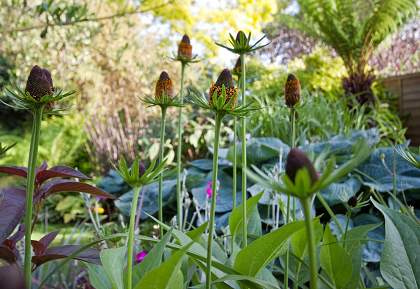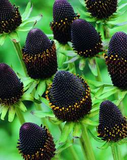 Рудбекия западная Green Wizard (Грин Визард). Соцветие лишено язычковых цветков и выглядит как черный конус в окружении зеленых листочков-прицветников. Цветет с июня по октябрь. Великолепна для групповых посадок, миксбордеров и срезки.