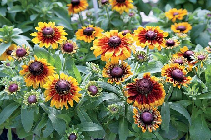 Рудбекия Toto Rustic (Тото Растик). Высота 25-30 см. Крупные яркие соцветия (7 см) смотрятся очень необычно и эффектно на таком маленьком растении. Обильно и непрерывно цветет до заморозков.